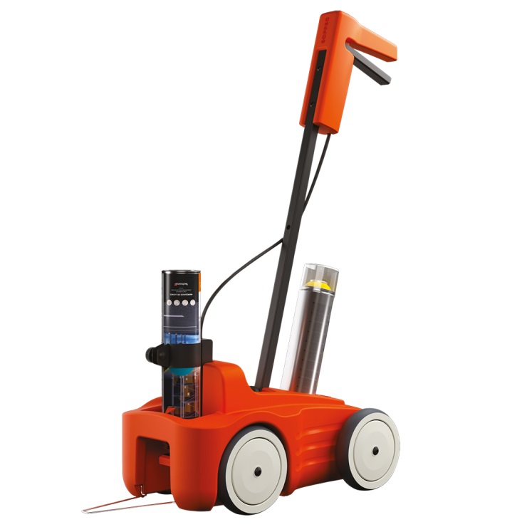 - Den garanterer rette linjer på glatte eller strukturerte underlag både innendørs og utendørs. Det er linjemarkeringsvognen SOPPEC DRIVER™ som ”driver” brukeren.