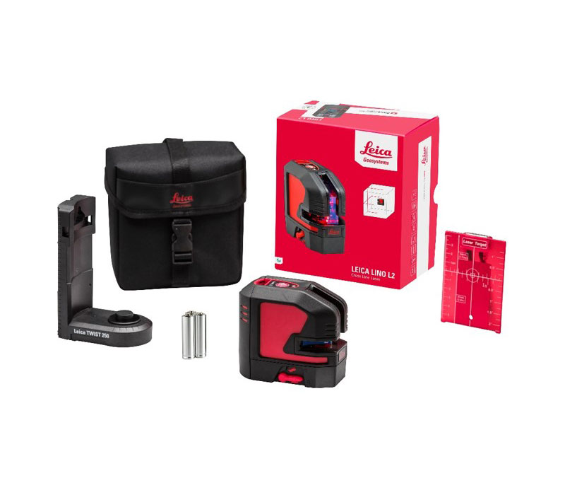 Leica Lino L2-S är en korslaser med en synlighet på upp till 25 meter och ett självnivelleringsområde på ± 4°. Den ställer in en horisontell linje samt en vertikal linje automatiskt. Lodlinjen går hela vägen ovanför instrumentet och horisontallinjen går hela vägen ut åt sidorna, alltså mer än 180°.