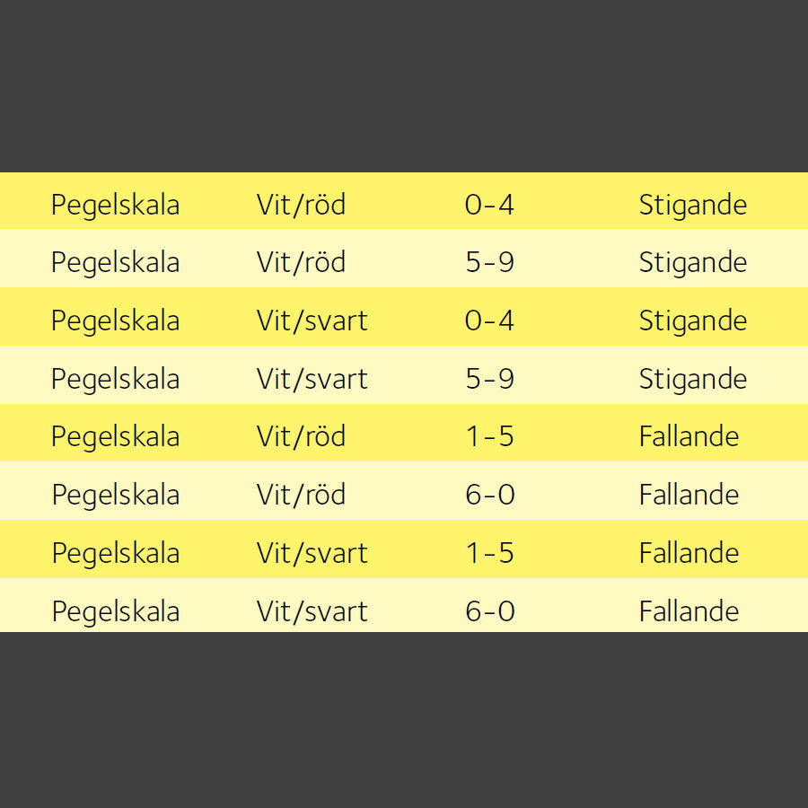 - Hvit/Svart skala, nummerserie 0-4, Stigende