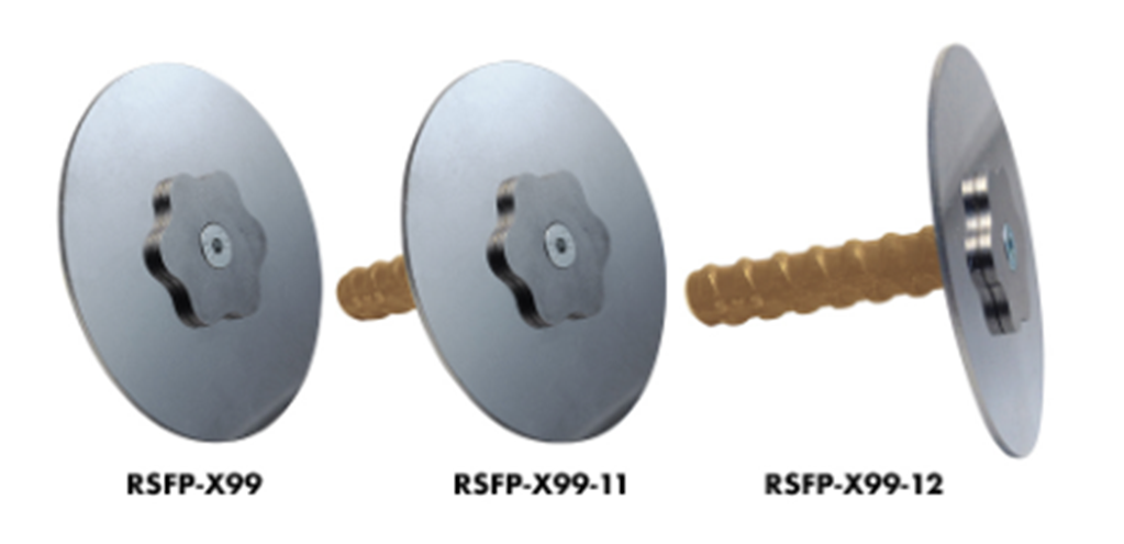 Illustrationen visar alla produkter som kan användas med den fasta punkten RSFP-X99-11+12. Magneter i bottenplattan håller det reflekterande målet eller miniprisma exakt på önskad plats.
