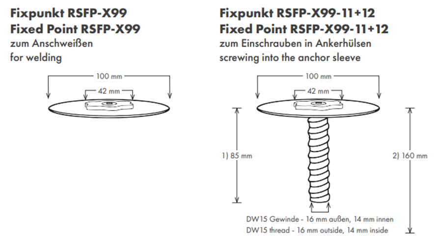 I tunnlar eller på ojämna ytor är de fasta punkterna permanent fästa genom borrning och limning. Vid användning under en längre tidsperiod rekommenderar vi svetsning av RSFP-X99. Därefter kan lämpliga markörer fästas för de undersökningsinstrument som används i projektet.