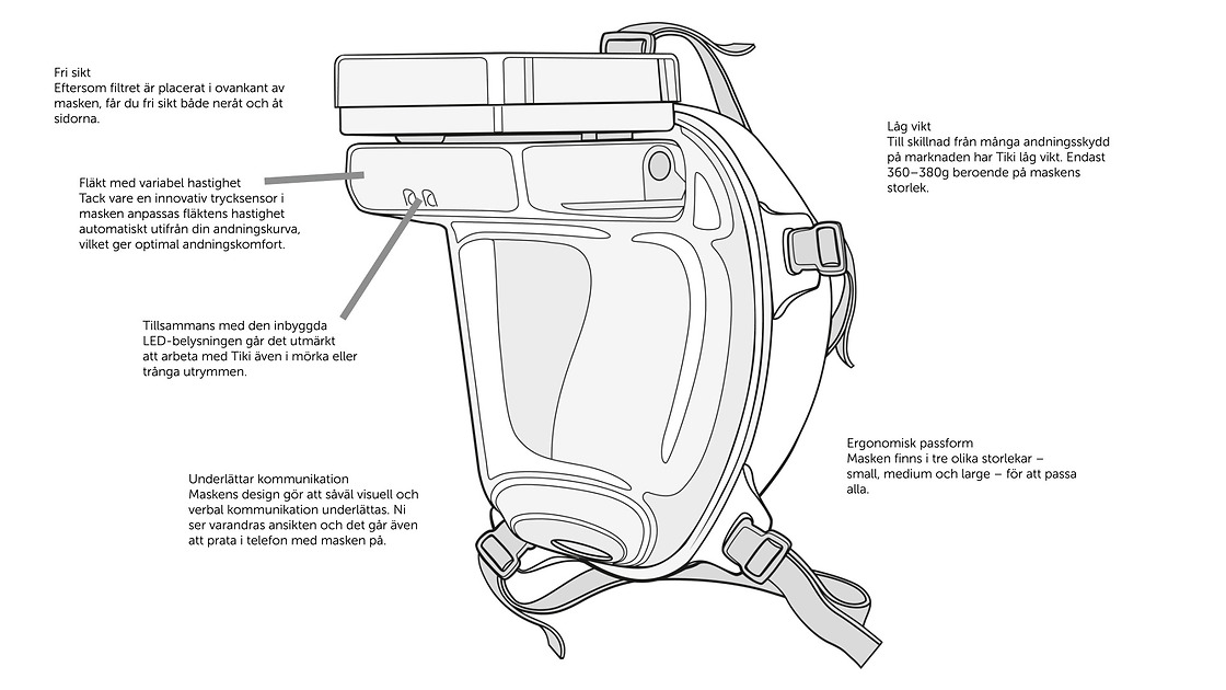 Tiki er et innovativt åndedrettsvern utviklet i Sverige for bruk i krevende miljøer med høye krav til beskyttelse mot luftbårne partikler og bakterier. Byggebransjen, redningstjenesten, legemiddelindustrien og laboratorier er eksempler på områder og bransjer der Tiki-åndedrettsvernet kan brukes. Masken har den høyeste beskyttelsesklassen som finnes for filtrerende ansiktsbeskyttelse i henhold til europeisk standard, EN12942 TM3P.